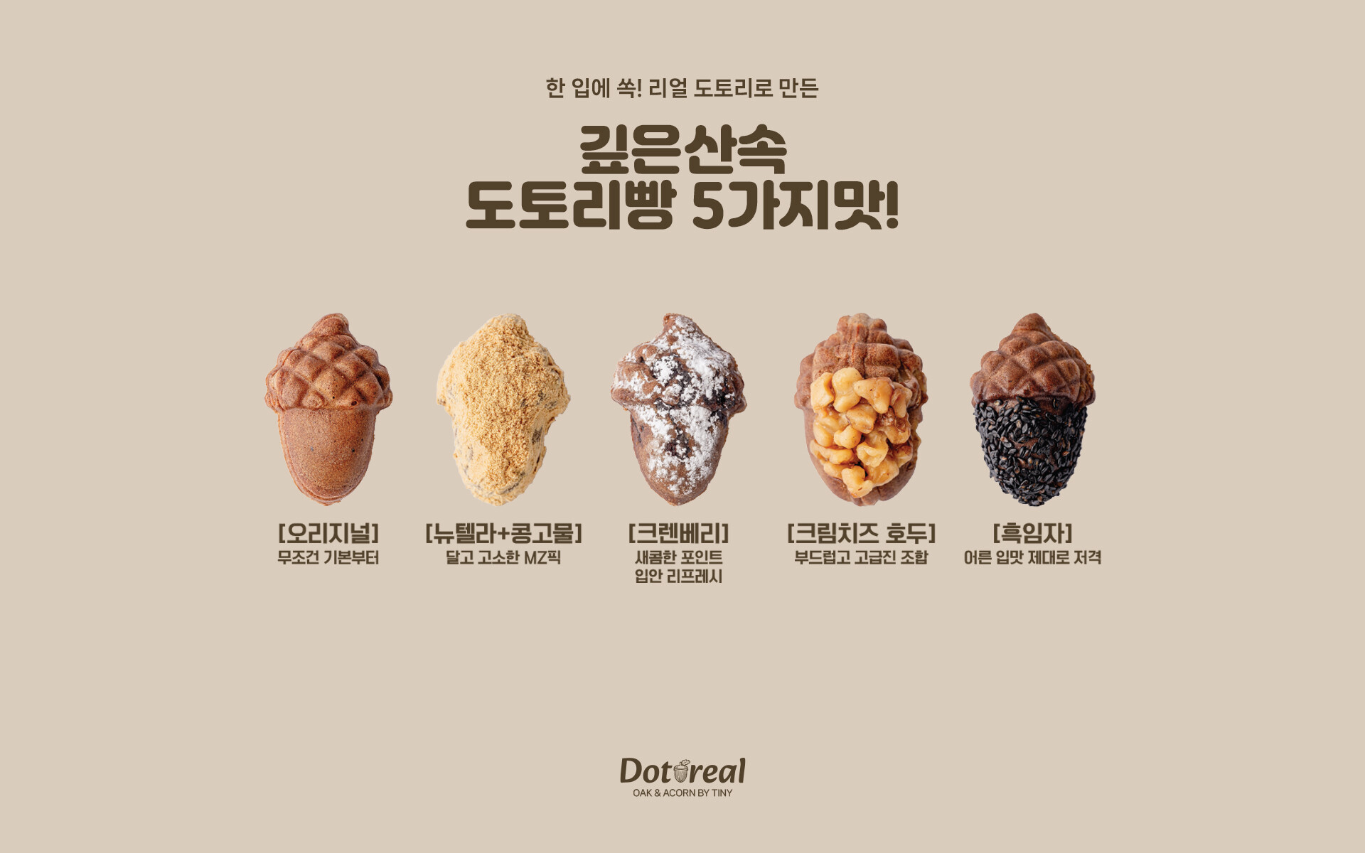 DOTOREAL은 ‘Dotori’와 ‘Real’의 합성어로, 전통 재료인 도토리를 가장 순수하고 진실된 방식으로 담아낸다는 의미를 담고 있습니다.